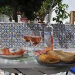 パティオの景色を見渡すF! Lisbon Guest Houseは,サン ペドロ デ アルカンタラ展望台から6キロメ-トルくらいの場所に位置しています. リスボンのゲストハウスは駐車場もあります.